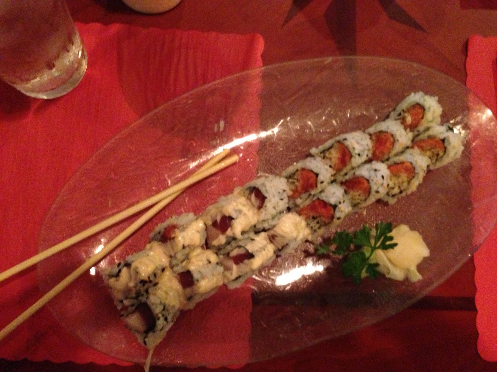 | The hubs and I split a TNT roll and a spicy tuna roll...yum!! |